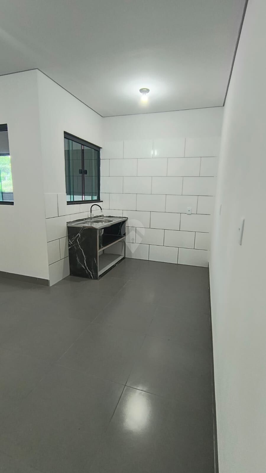 Garagem coberta, sala, cozinha, suíte, lavanderia coberta.