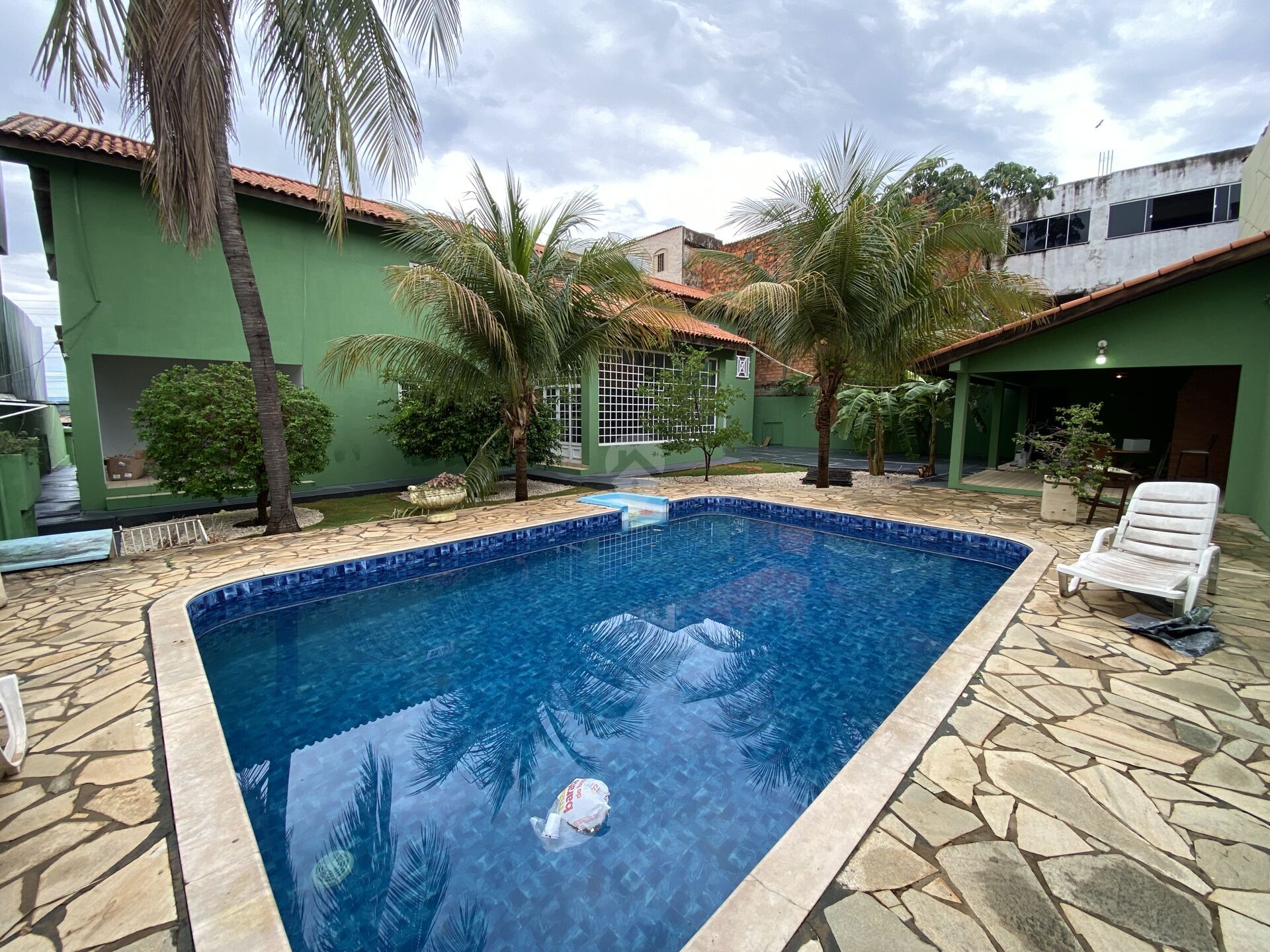 Casa bem arejada, jardim, piscina em vinil, ducha, banheira com hidromassagem, bancadas em granito, cofre, portão eletrônico, interfone, 7 câmeras de segurança com todos os equipamentos